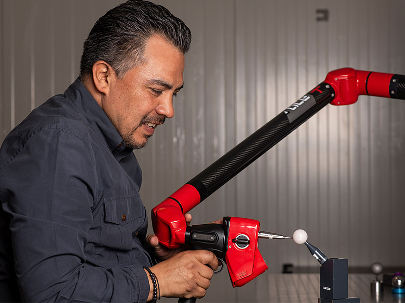 Las CMM articuladas portátiles, también conocidas comúnmente como brazos de medición, son dispositivos de medición 3D desarrollados en respuesta a la creciente necesidad de una solución de sondeo que ofreciera más portabilidad y flexibilidad que una CMM fija. Los brazos de medición portátiles determinan y registran la ubicación de una sonda en el espacio 3D e informan los resultados mediante un software. El brazo calcula la posición exacta de la sonda en cada punto mediante codificadores integrados en cada uno de sus ejes o articulaciones.
